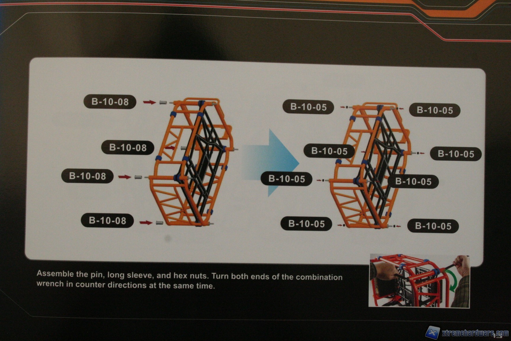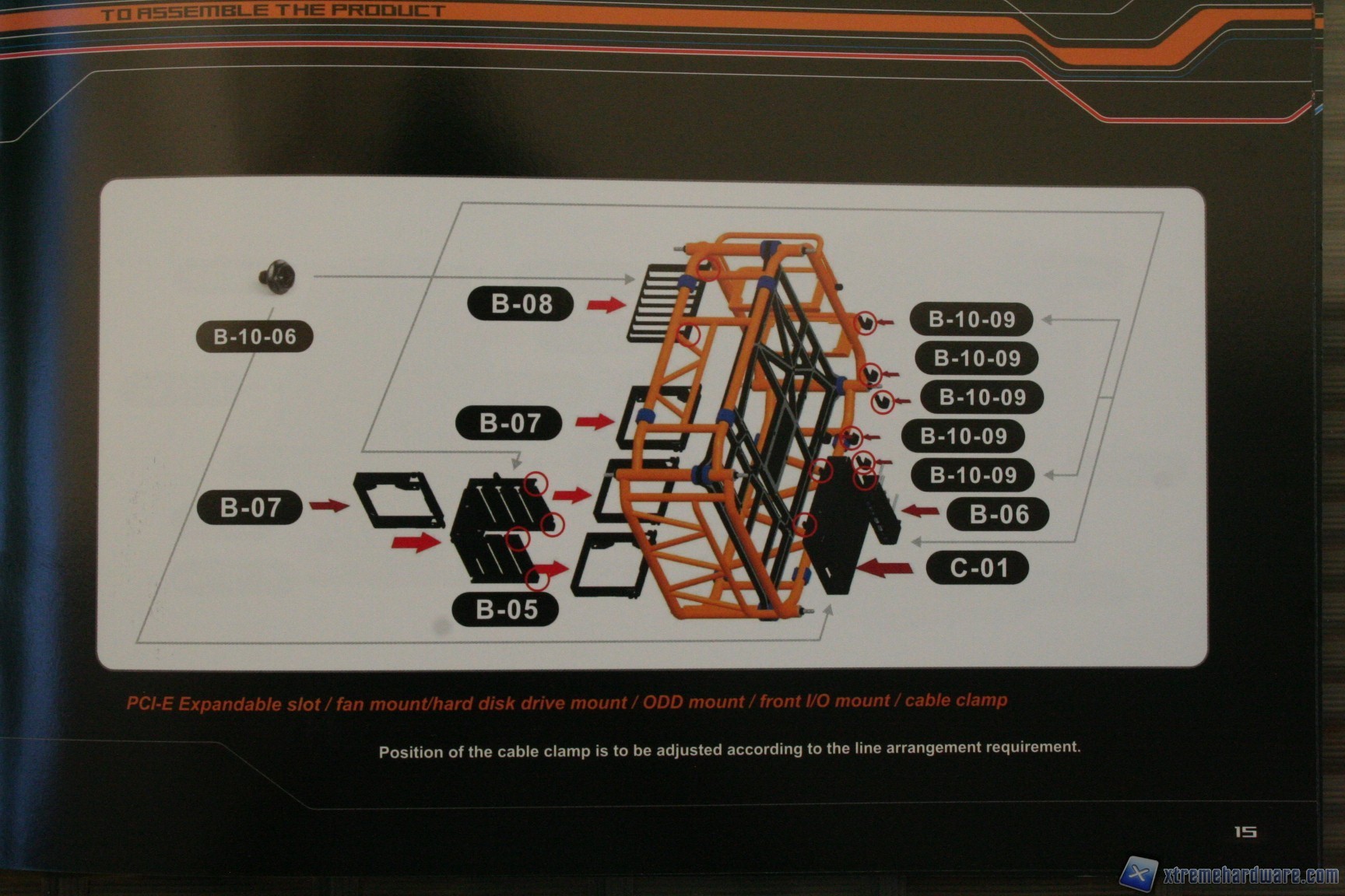 10. - Fatto questo il telaio è pronto, ora rimane fissare il cage per gli hard disk (B-05), il plate posteriore per la periferica da 5.25” (C-01), i fermi passacavi (B-10-09), il meccanismo di blocco delle periferiche PCI (B-08) ed infine i quattro supporti per ventole da 120mm (B-07), grazie alle viti in dotazione (B-10-06).